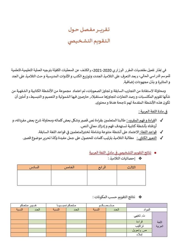 نموذج تقرير التقويم التشخيصي عربية فرنسية قابل للتعديل