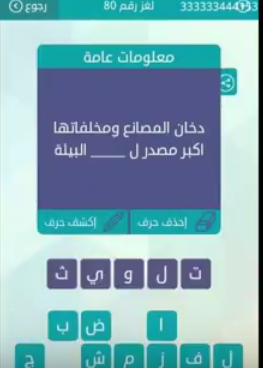 جواب لغز دخان المصانع ومخلفاتها اكبر مصدر ل البيلة لغز رقم 80 من المجموعة التاسعة من لعبة وص صقور الإبدآع