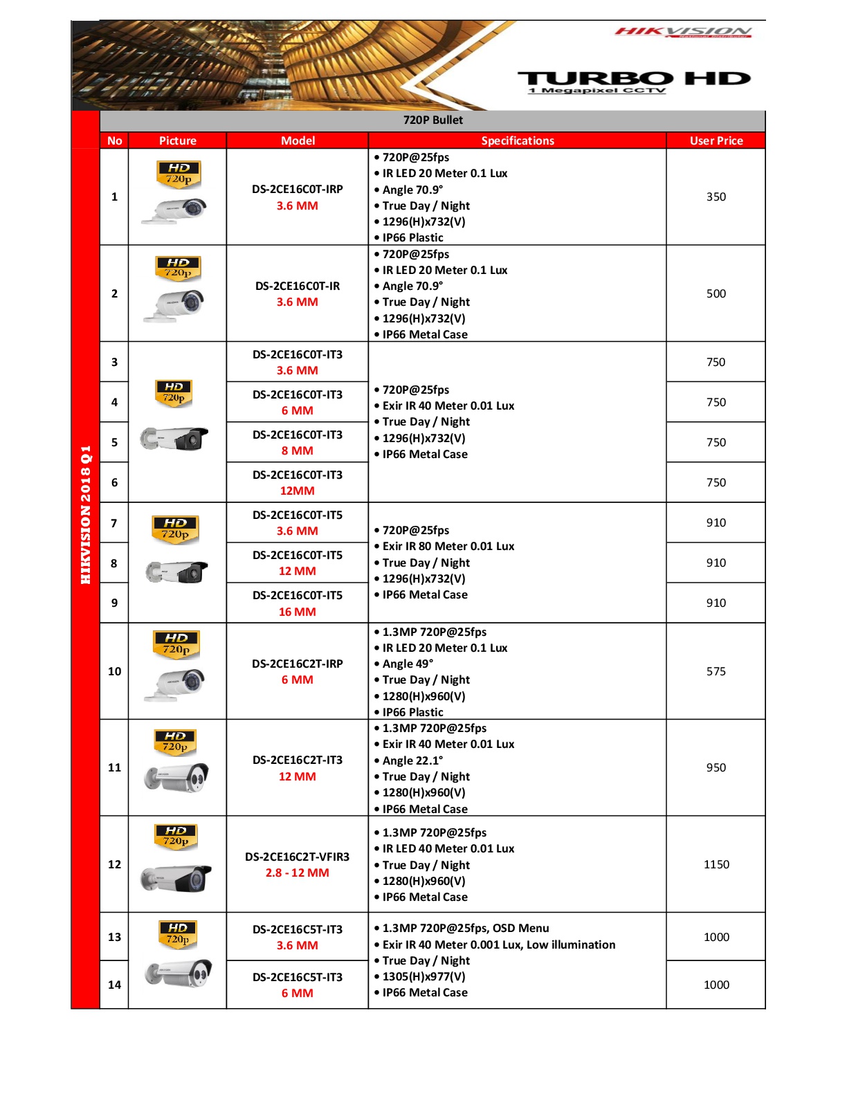 Hikvision 2018 Price List قائمة اسعار كاميرات مراقبة