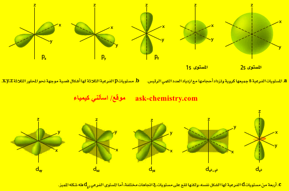ما هي أشكال المستويات الفرعية S P D F اسألني كيمياء